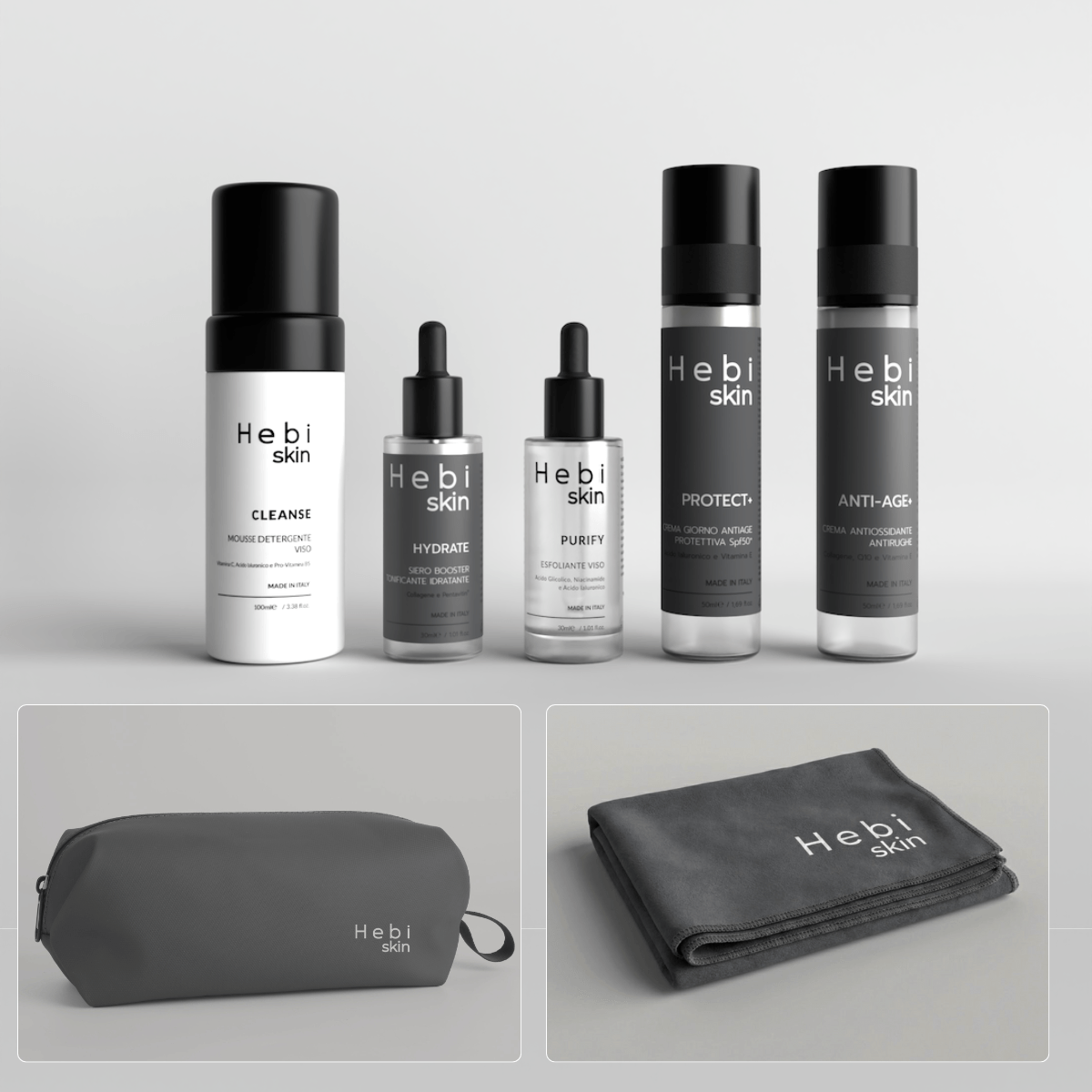 La routine più completa Hebi Skin. Un percorso quotidiano mattina e sera che combina pulizia, idratazione, protezione e trattamento serale per una pelle più sana, compatta e dall’aspetto curato.