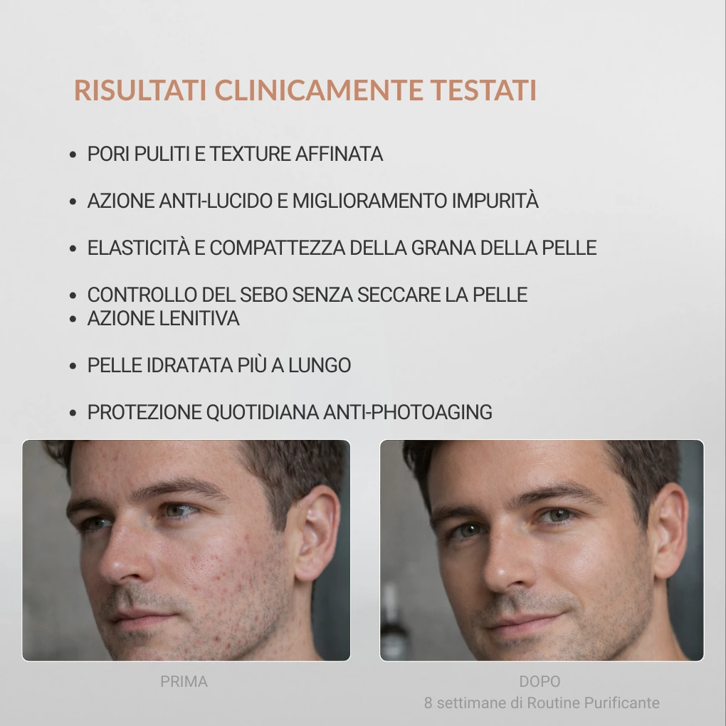Ho integrato la routine purificazione nella mia cura quotidiana e in poche settimane la pelle è visibilmente più pulita, i pori sembrano meno ostruiti e la lucidità è diminuita. Ogni prodotto è facile da usare e non lascia la pelle appesantita.